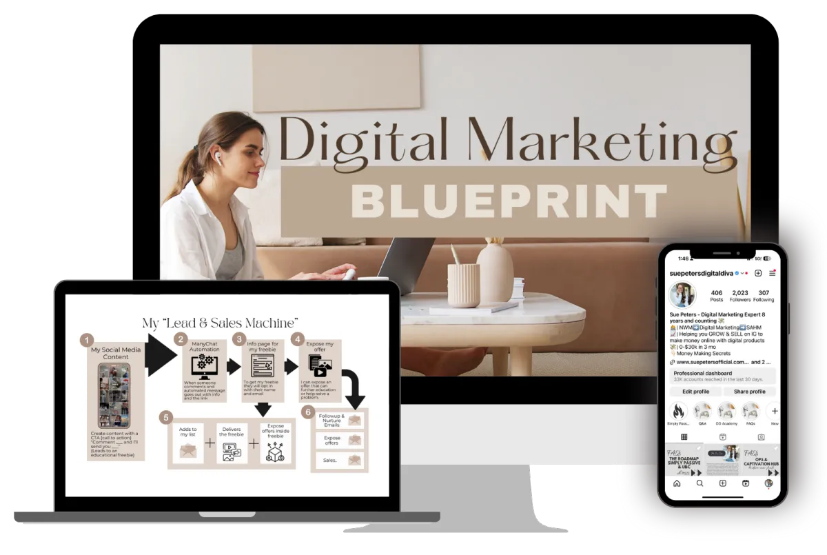 My name is Sue Peters, the Creator of Plug & Play ... I'm a digital marketing expert and business coach helping women create wealth and freedom with digital marketing strategies...